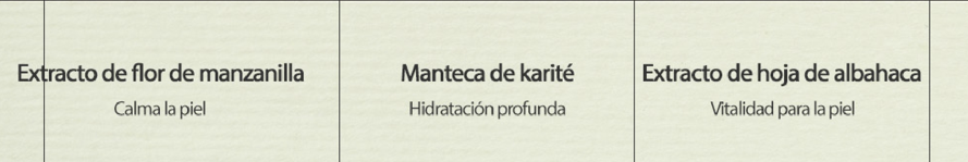 El suave aroma de manteca de karité y los extractos vegetales delicados