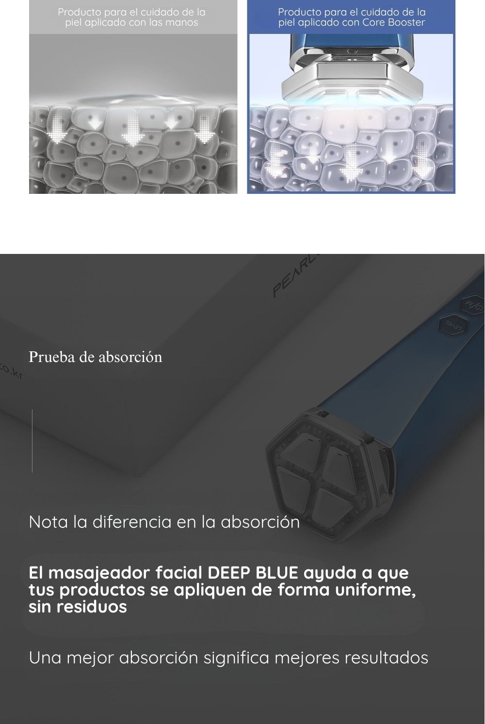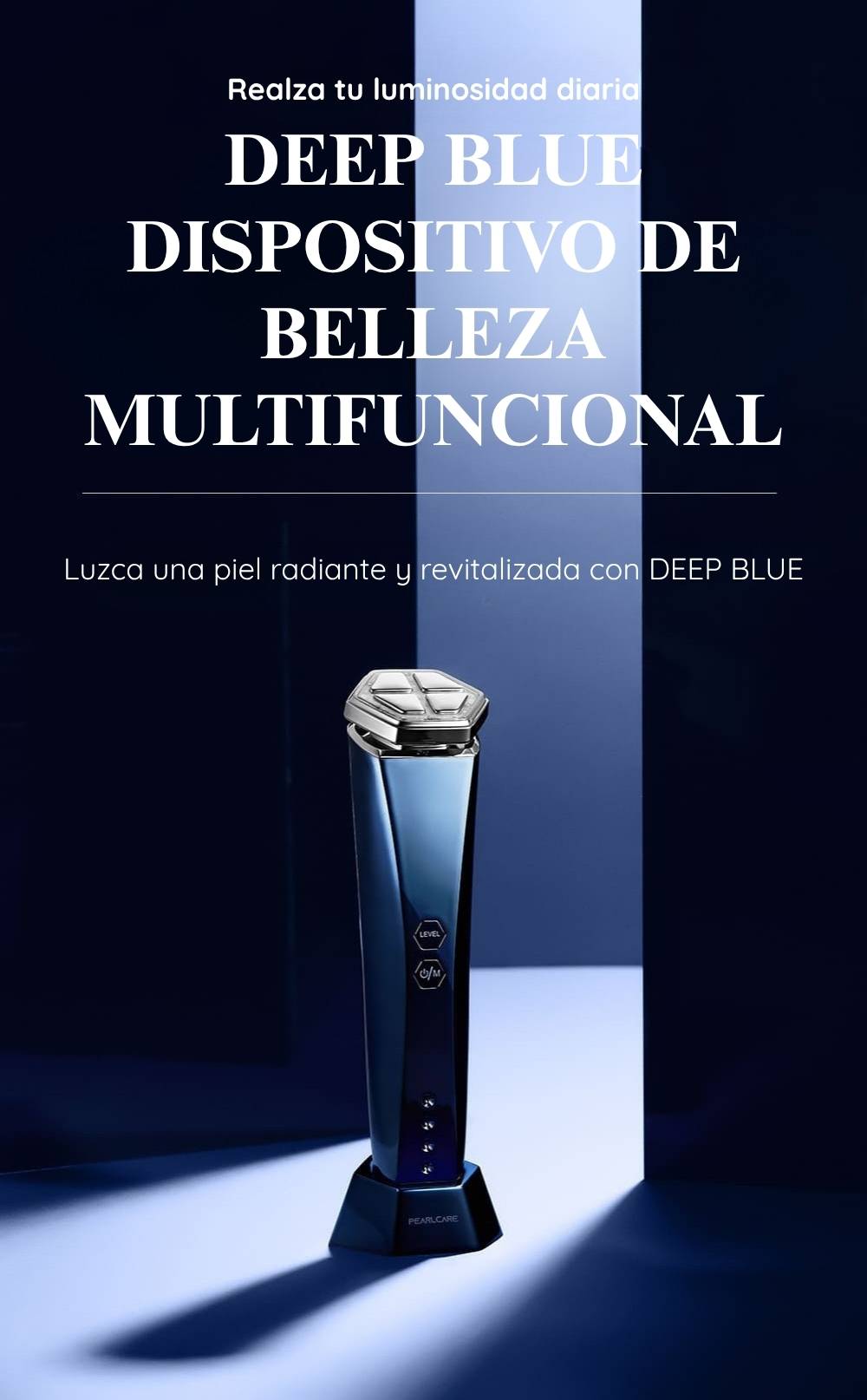 Lleva el cuidado de la piel a casa con DEEP-BLUE, un dispositivo de belleza premium PEARLCARE en un elegante diseño azul espejo que ayuda a que tu rutina se sienta más suave, fresca y placentera todos los días.