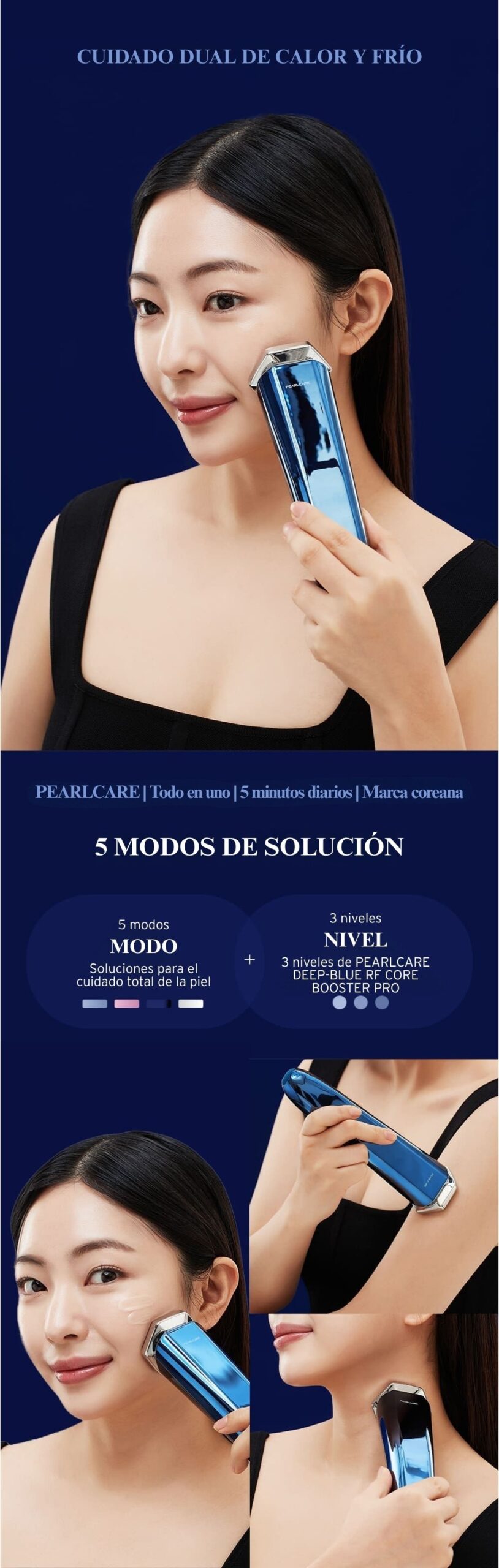 PEARLCARE – Dispositivo de Belleza Facial Multifuncional Frío y Caliente con Masajeador Galvánico – Cuidado Antiedad Todo en Uno para el Hogar – Marca Coreana